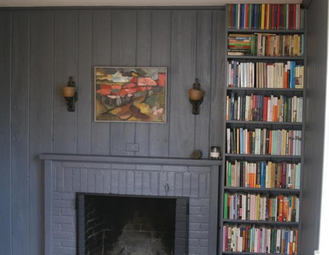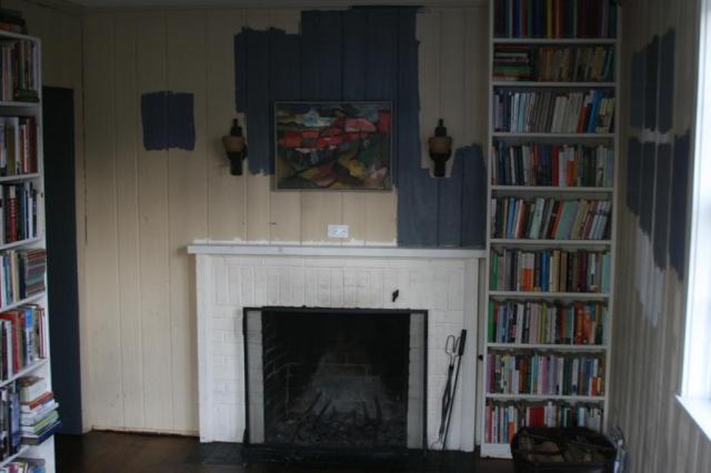There was a bit of a delay actually getting around to the chore of painting. By the time we got serious about it, we felt that our plans for renovation might happen sooner rather than later, so why bother painting? One thing led to another, or in this case didn’t lead to another and here we are two years later with the same damn sample colors painted on the walls. And now we have delayed our project until about January of next year. So even though we have lived with the kooky library walls for two years, I decided I didn’t want to look at them for another year.