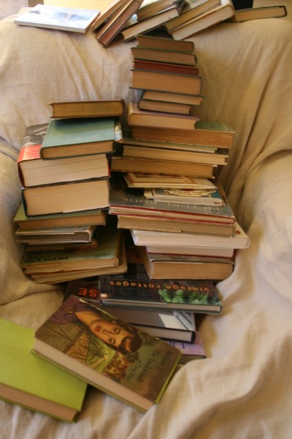 | The pile that is being donated to the Chevy Chase Friends of the Library |