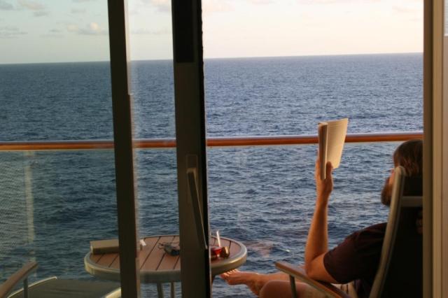 And my favorite days are the days at sea (five of them on this cruise) where there is nothing to do but read, have massages, and sit on our verandah and stare at the ocean. (Of course there are many other things to do, but that pretty much sums up what I plan to do.)